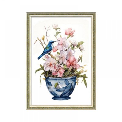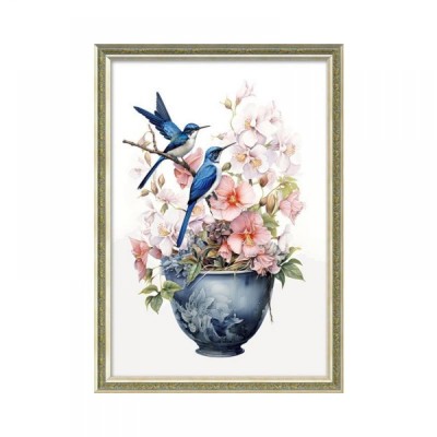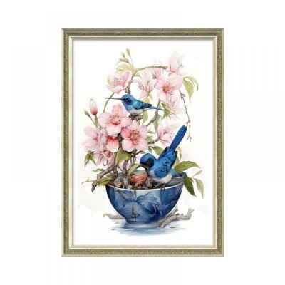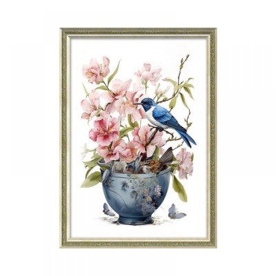 Flowers and birds in a bowl, printed paintings, plants, flowers