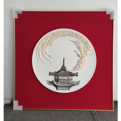Phoenix on ancient buildings, physical painting, 3D Relief (3D Relief, paint, gold foil hand painting)