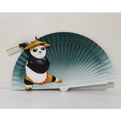 Kung Fu panda and fan, real object painting, 3D Relief (3D Relief, sandstone paint, hand painting)