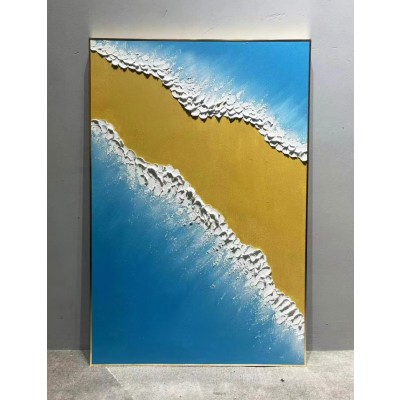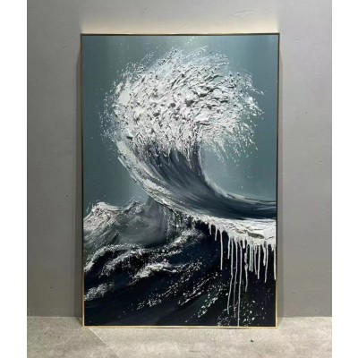 Waves coming, oil painting, landscape oil painting (hand drawn texture oil painting)