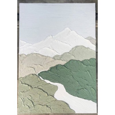 Layers of peaks, oil painting, landscape oil painting (hand drawn texture oil painting)