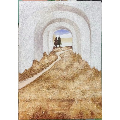 Arch on the path, oil painting, landscape oil painting (hand drawn texture oil painting)