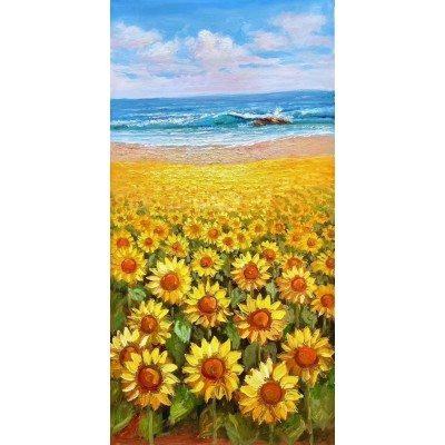 Sunflowers in the autumn breeze, oil painting, landscape oil painting, flower oil painting (hand drawn texture oil paint...