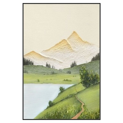 Green landscape oil painting, oil painting, landscape oil painting (hand drawn texture oil painting PS frame)