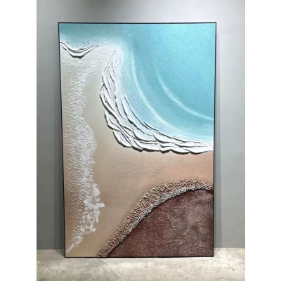 Blue beach, oil painting, landscape oil painting (texture hand drawn oil painting)