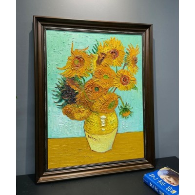 Van Gogh s Sunflowers , oil painting, famous painting, flower oil painting (hand drawn oil painting, solid wood frame)