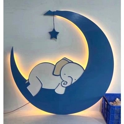 Small elephant and moon, physical painting, 3D Relief, light (3D Relief, paint, hand painting)
