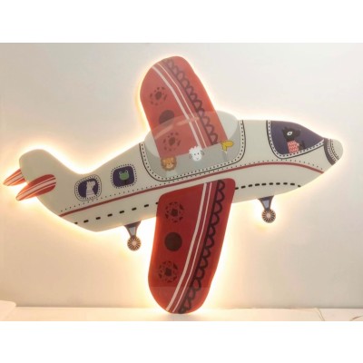 Cartoon light plane, physical painting, acrylic, light (3D Relief, acrylic, UV printing, LED light strip, remote control...