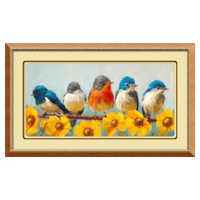 Yellow Flowers and Birds, Printed Paintings, Animals, Nature, Children