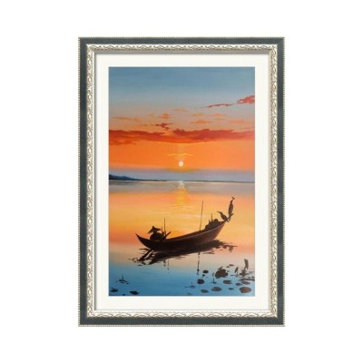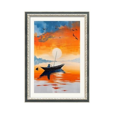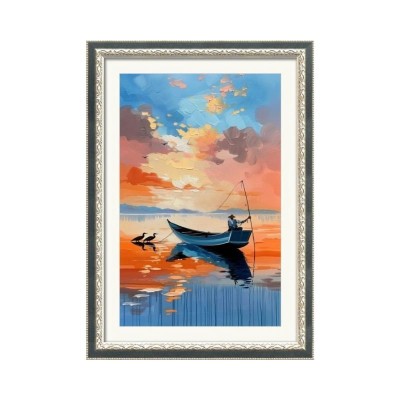 Calm Lake and Boat, Printed Paintings, Coastal, Tropical, Landscape, Photography