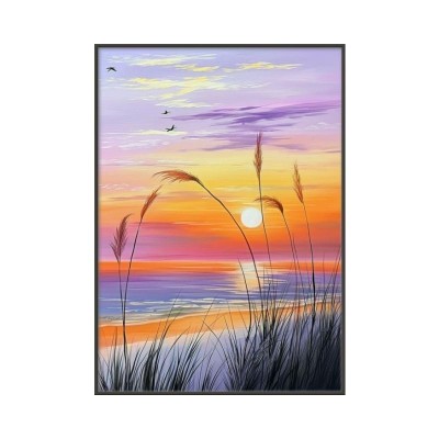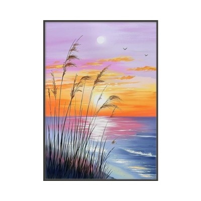 Sunset, Sun, Reed, Beach, Sun, Reed, Beach, Printed Painting, Landscape, Coastal, Tropical