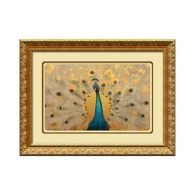 Golden Peacock, Printed Painting, Animal, Natural, Fashionable Concrete
