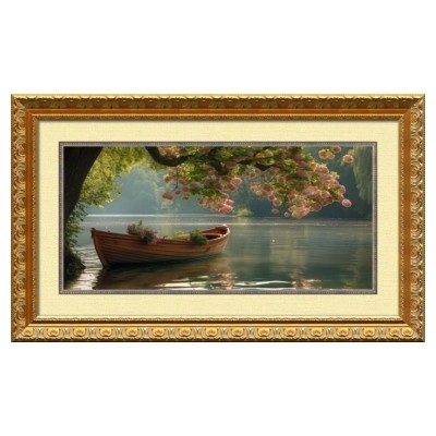 Calm Lake and Boat, Printed Paintings, Coastal, Tropical, Landscape, Photography