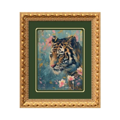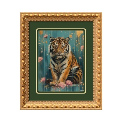 Siberian Tiger In The Golden Dream,Animals And Nature, Pets,Textured Wall Decorative for Dining Room, Abstract,Minimali...