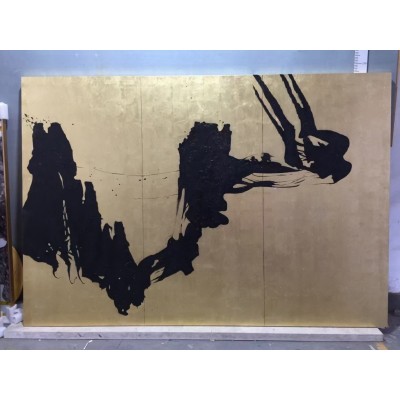 Golden Shallow Valley, oil painting, abstract oil painting, ocean and lake (with gold foil and hand drawn oil painting)