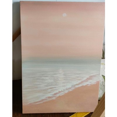 Beach, oil painting, landscape oil painting, ocean and lake (hand painted texture oil painting)
