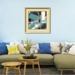 This Work Is An Abstract Art Piece Full Of Modernity, Creating A Unique Visual Experience Through The Clever Combination Of Geometric Shapes And Colors. In The Center Of The Screen, A Striking White Circle Becomes The Visual Focus, Interweaving With The Surrounding Scattered Blue, Yellow, And Gray Rectangles To Form A Dynamic And Tense Composition. These Geometric Elements, With Simple Lines And Vivid Color Contrasts, Showcase The Simplicity And Creativity Of Modern Art, Giving People A Sense Of Aesthetic Enjoyment That Transcends Reality.